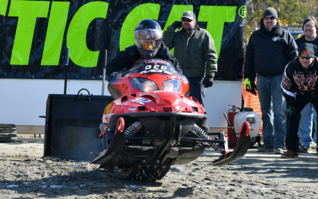 Ski’s up guys! Though not on a mini, Mason McDunnah, only a junior at Schenck High School in East Millinocket in far lane lost to Levi Nickerson in closest lane by .022 seconds. This was McDunnah’s first grass drag race. In the near lane is Levi Nickerson. The starter is Tyler Michaud, Ashland Snowmobile Club Treasurer.